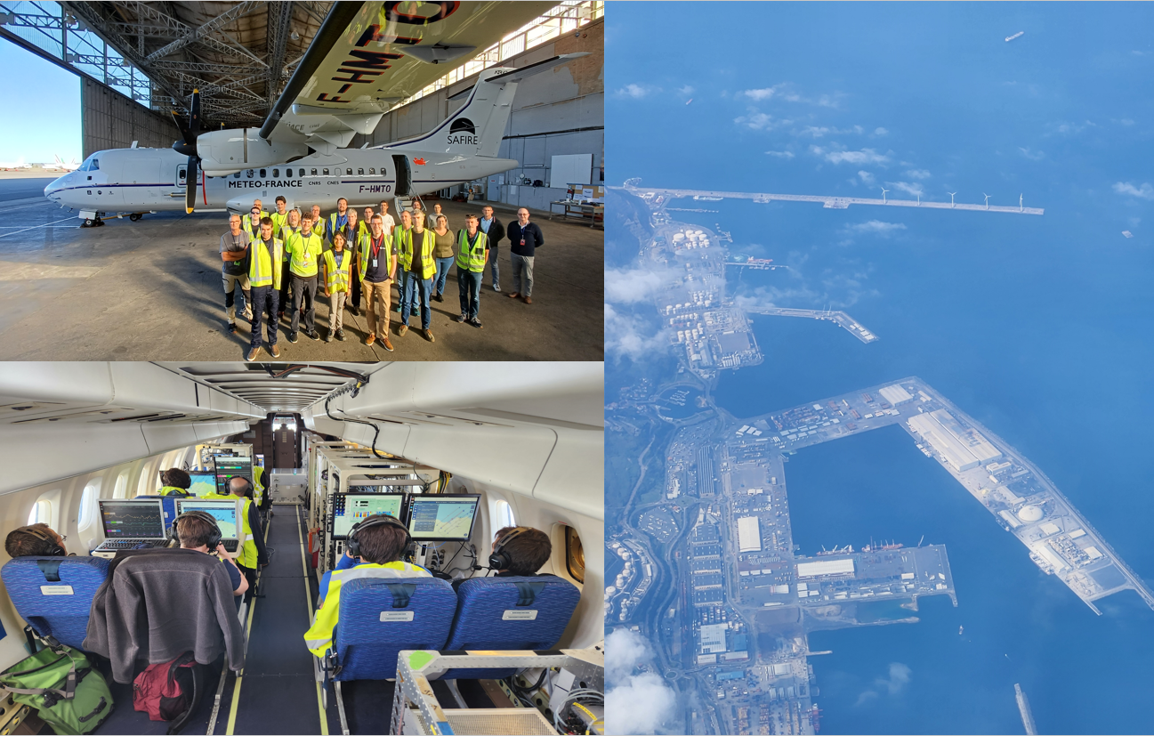 Images: (haut) L’équipe scientifique d’AB2CD opérant chez SAFIRE à Toulouse-Francazal devant l’avion ATR-42 embarquant deux Lidars pour les mesures de traces de pollution. Crédit : J-C. Canonici.